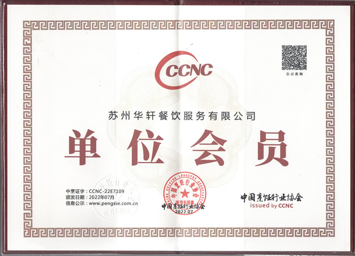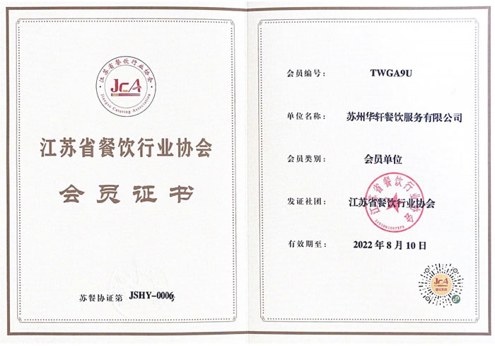 江苏省餐饮行业协会会员证书